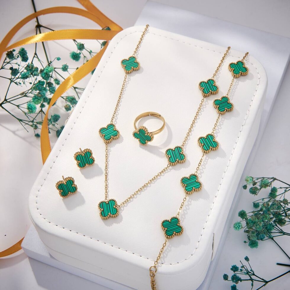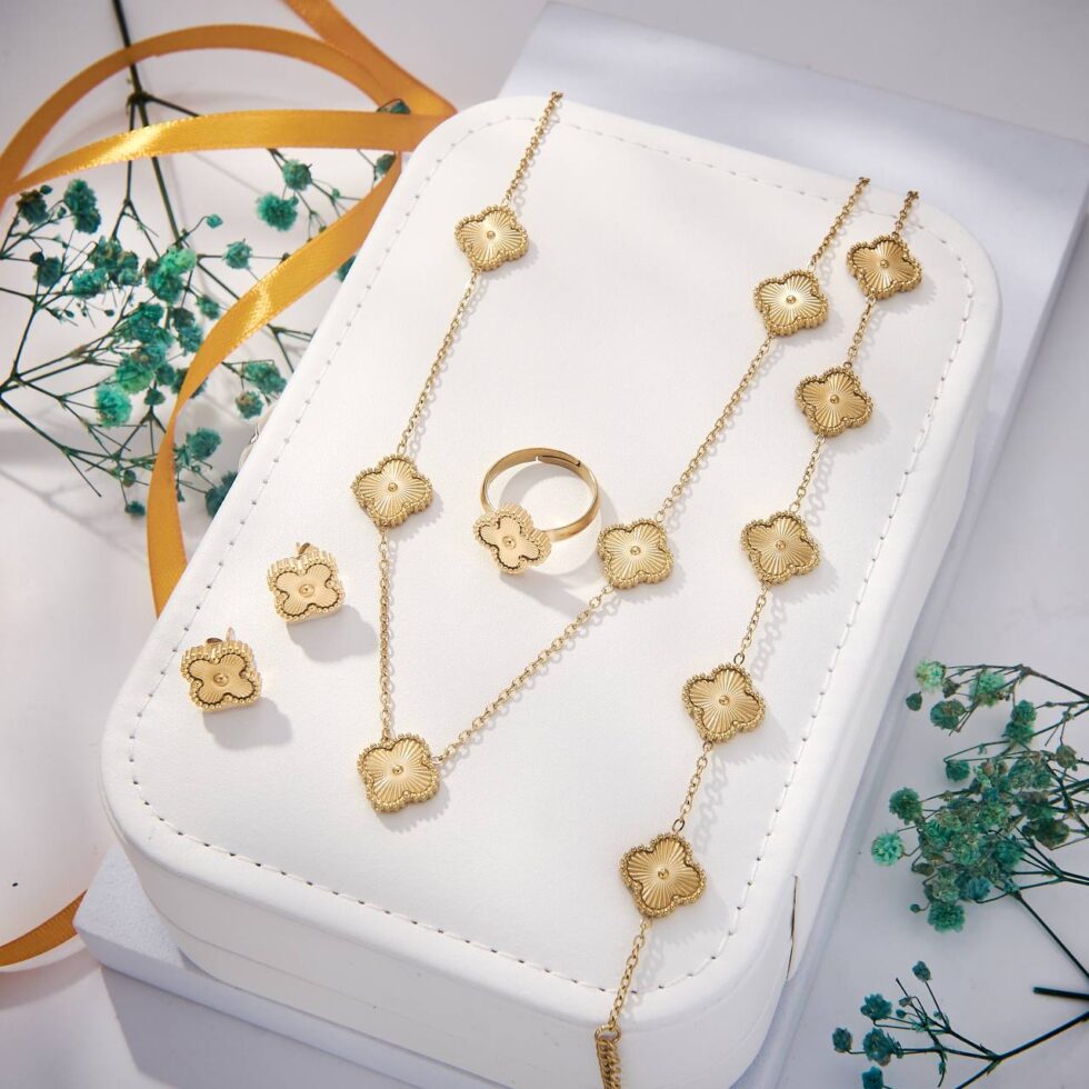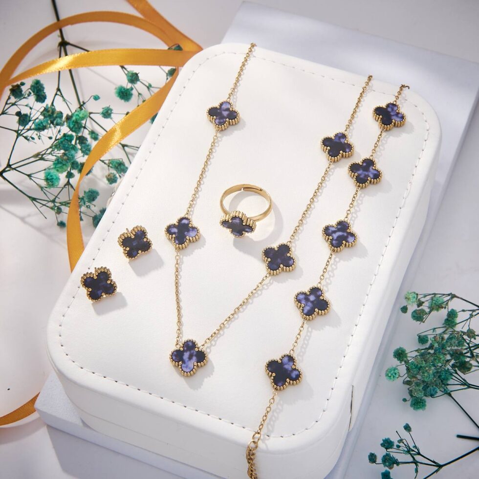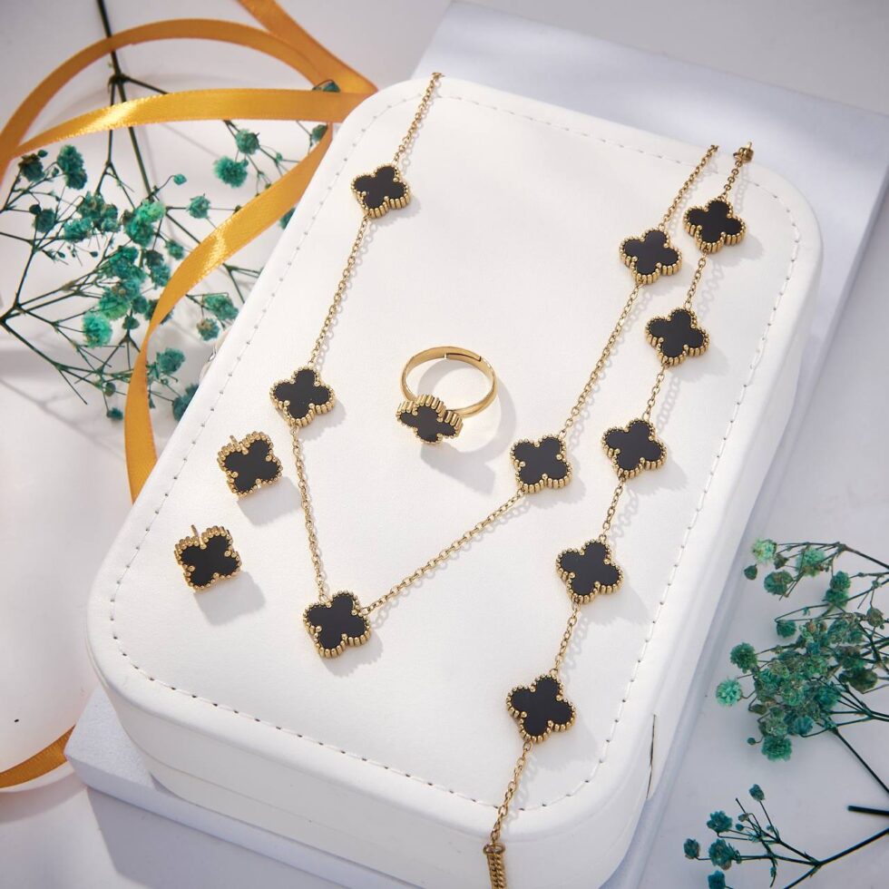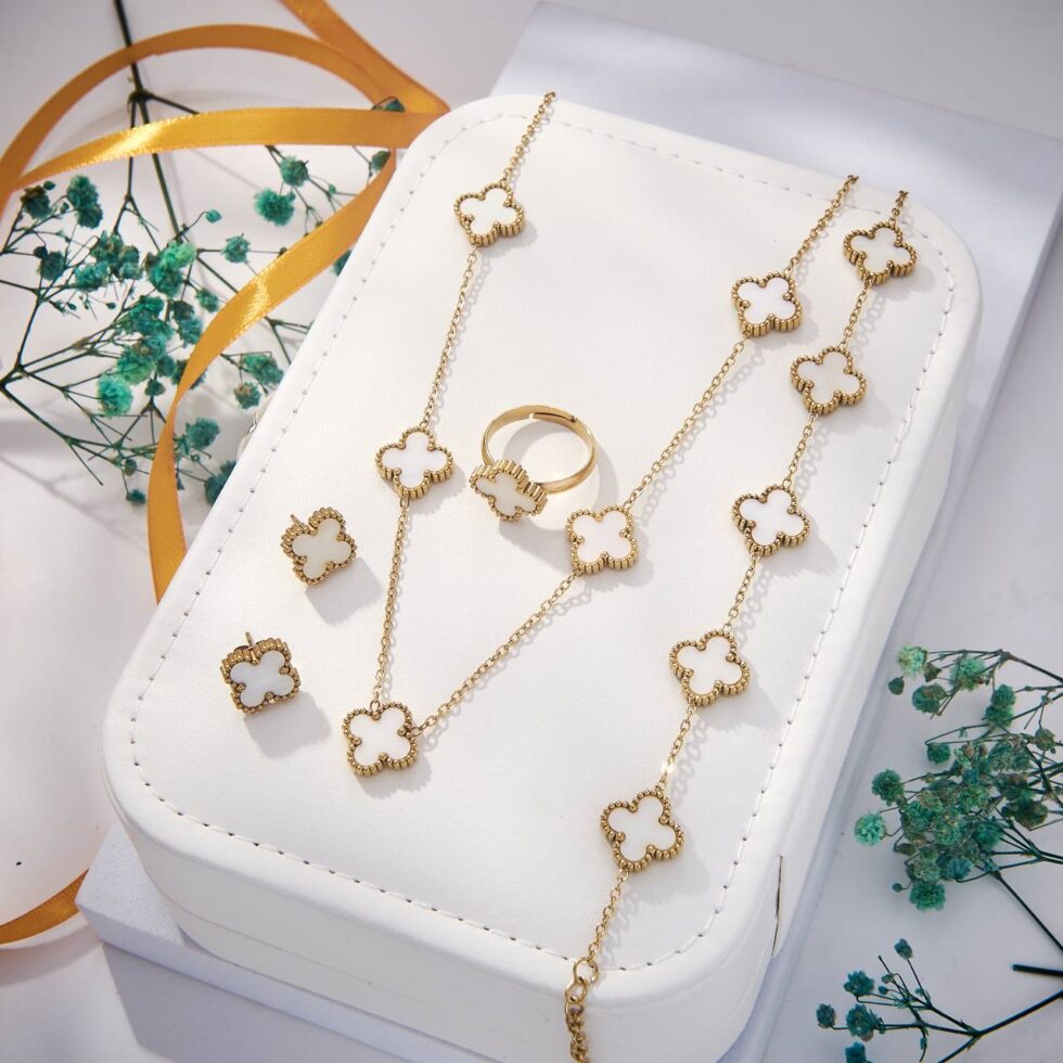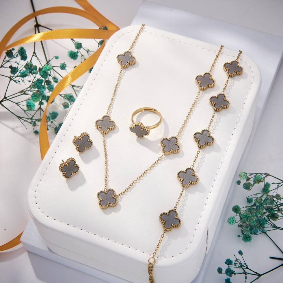 Clover Motif Full Set (Grey). Coordinated jewelry set for a complete look.