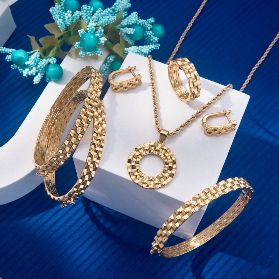Xuping Textured Circle Pendant Set